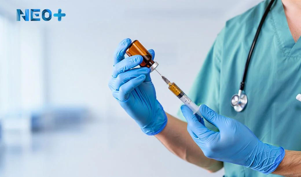 Врач набирает в шприц лекарство